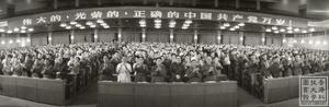 Paul T. K. Lin's Hsinhua Photo Collection Wide angle photo of a meeting with people standing and applauding